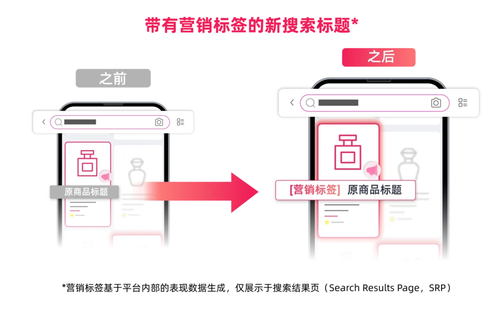 该功能仅展示在搜索结果页(Search Results Page,SRP),以提升商品的曝光度和相关性。
