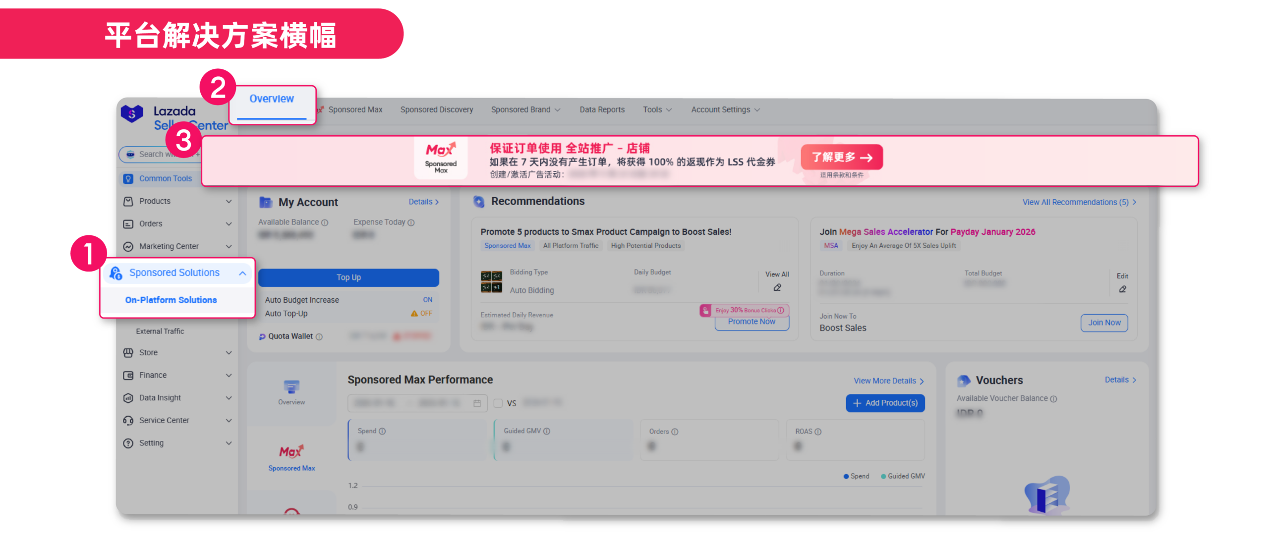 例如:如果卖家在 2026 年 3 月 27 日激活广告活动,并且从 3 月 27 日到 4 月 2 日(共 7 天)没有收到任何订单,他们将有资格获得 100% 返现 (只有 钱包信用额度 (wallet credit) 的消费)。活动期间如果广告未激活或重新激活,则不符合资格。 - 卖家必须确保他们的账户余额充足,以维持广告活动的持续运行。