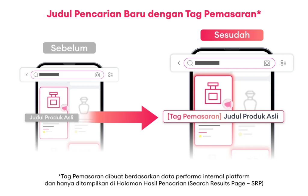 Fitur ini hanya ditampilkan di Halaman Hasil Pencarian (Search Results Page – SRP) untuk meningkatkan visibilitas dan relevansi produk.
