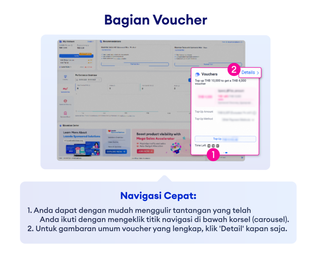- Setiap seller berhak menerima satu voucher per tier untuk pengeluaran dompet yang memenuhi syarat selama periode campaign.