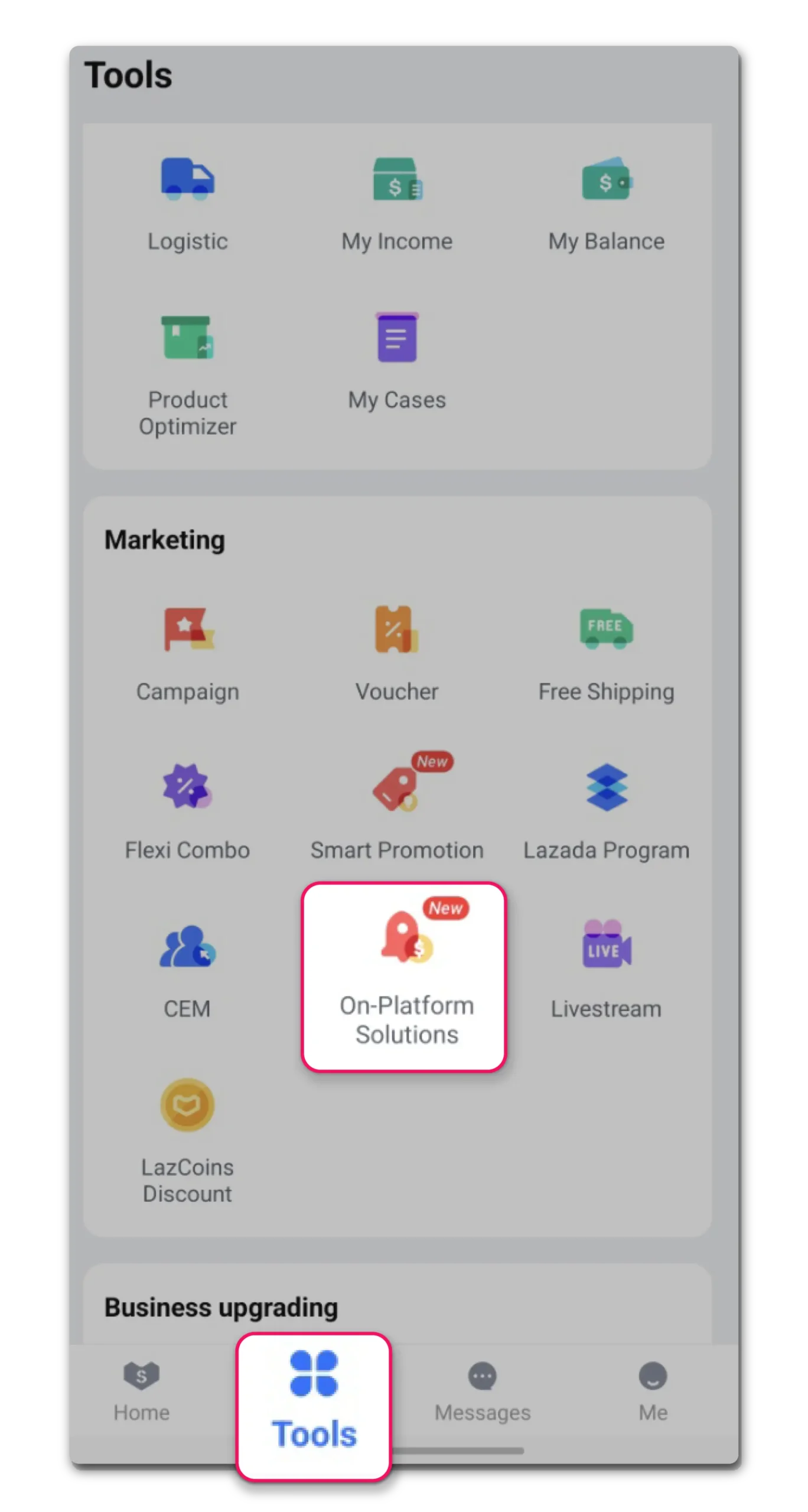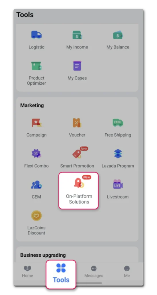2. Navigate to Marketing section and select On-Platform Solution