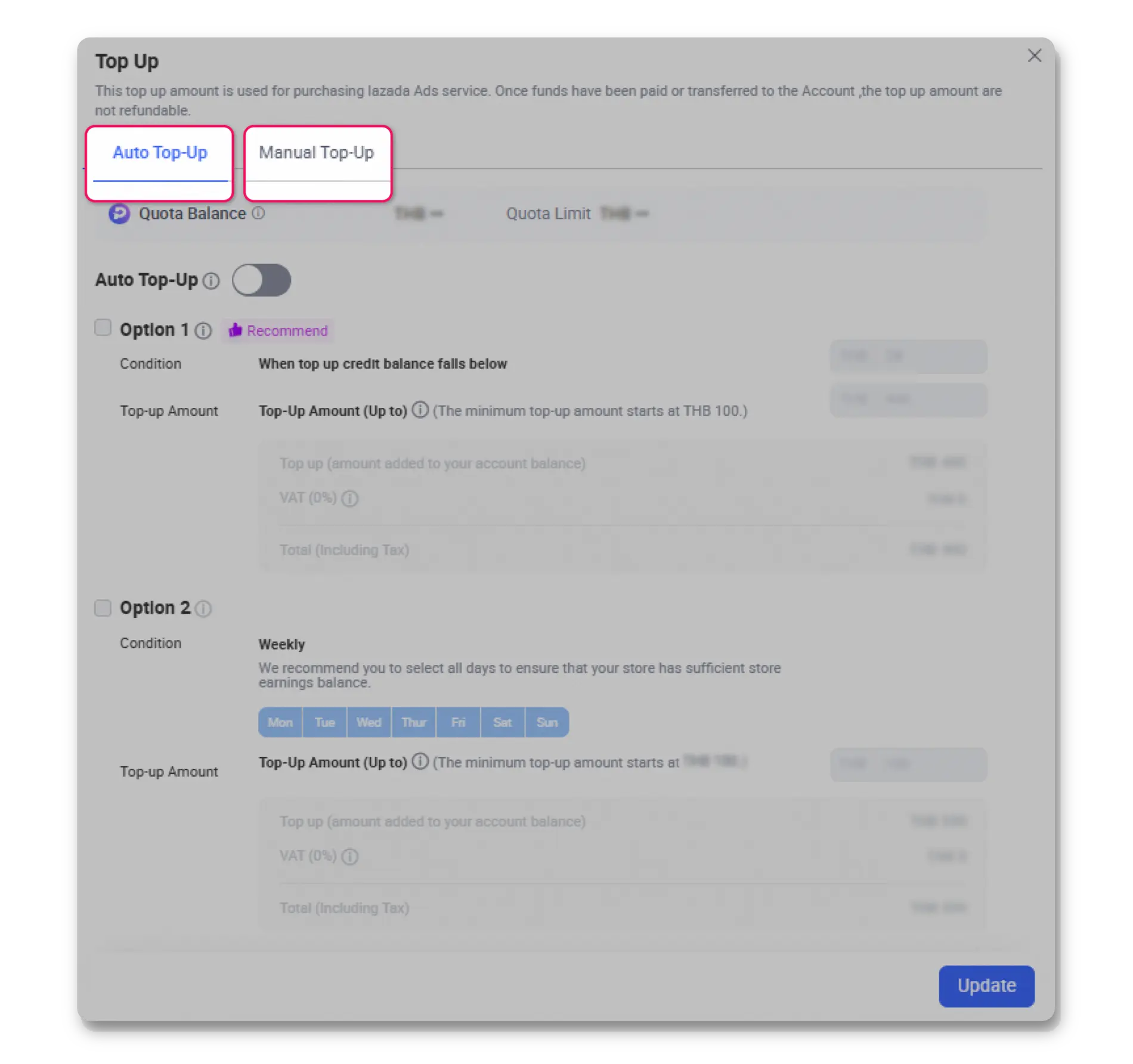 Auto Top-Up Configuration: