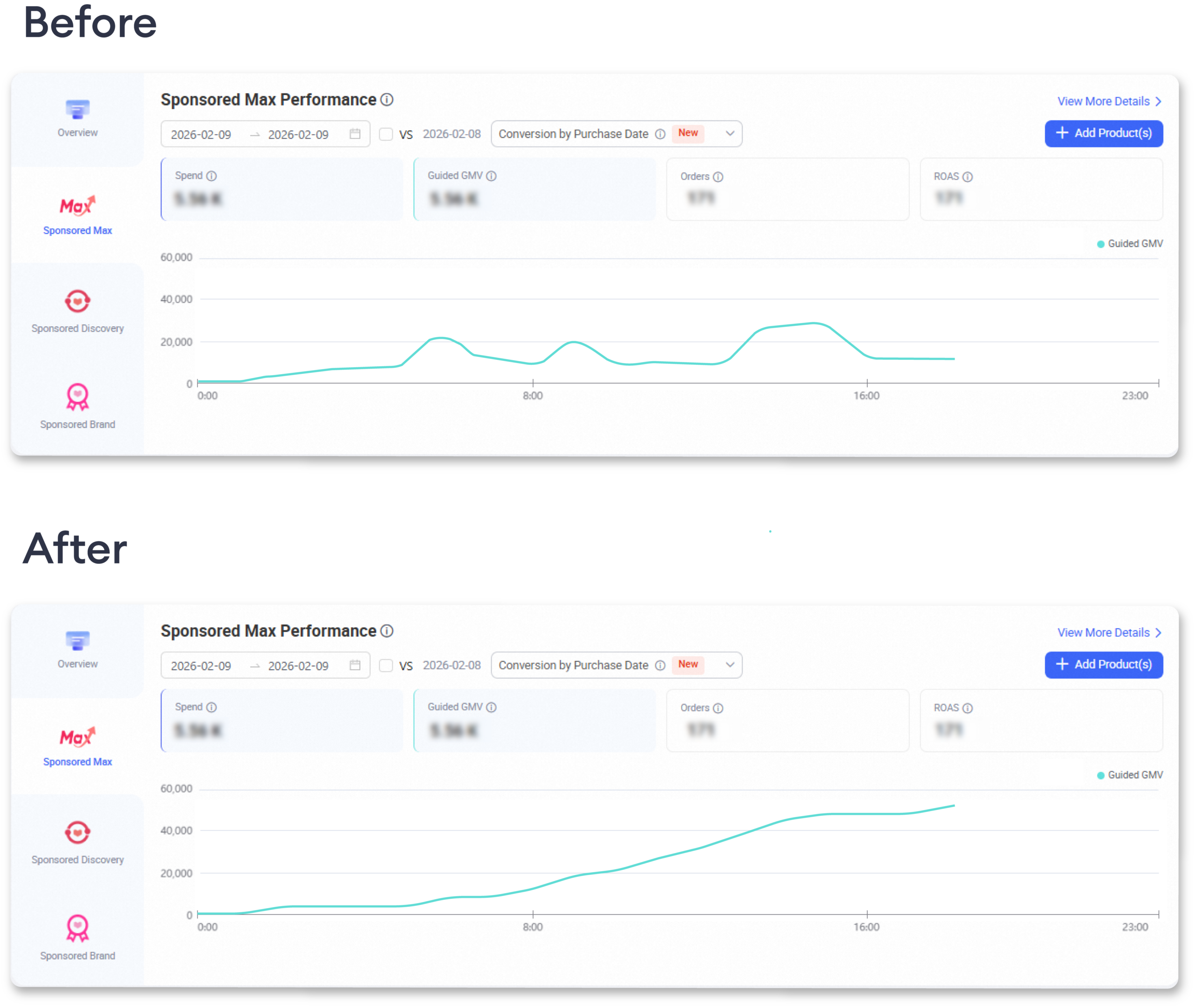 With the new cumulative view, each data point represents the total performance accumulated from the start of the day up to that hour. This creates a smoother, more continuous performance trend that reflects how results build over time, making it easier to understand overall pacing and daily progress at a glance.