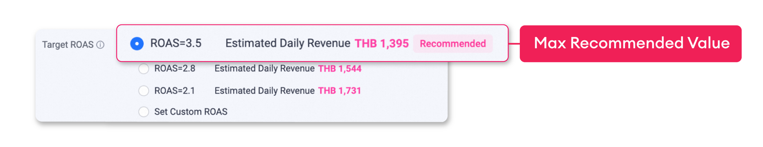 ● If the sellers accepts a new system-recommended Target ROAS on the same day, rebates will be calculated based on the accepted Target ROAS value.