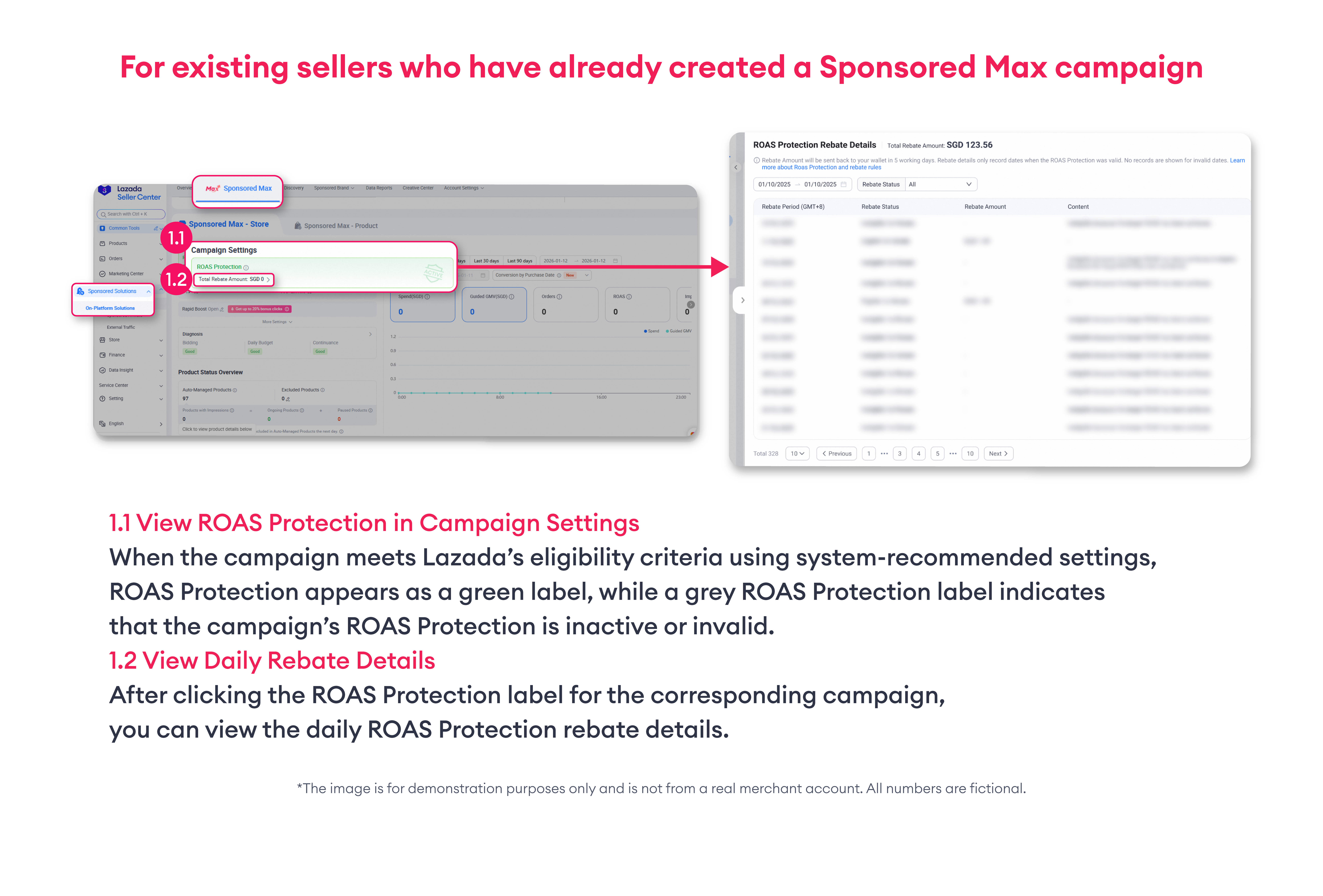 ● Rebate is only applicable when the campaign’s actual ROAS falls below the protected ROAS threshold. If the campaign achieves or exceeds the protected ROAS level, no rebate will be issued, as the campaign has already met the performance requirement.