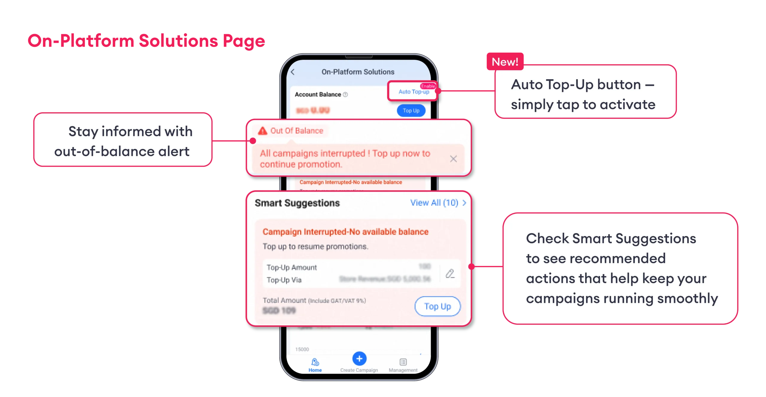 New enhancements to On-Platform Solutions on the Lazada Seller Center Mobile App are rolling out from November 20 to help you manage campaigns and balance more efficiently