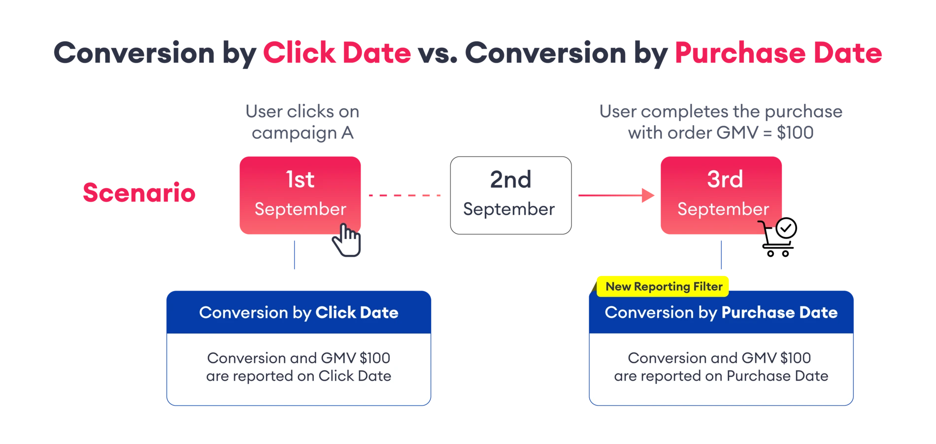 Conversion by Purchase Date: Conversions are attributed to the date when the transaction is completed. Conversion metrics appear closer to when the actual business outcome occurs.This improves alignment with store GMV, accelerates performance visibility, and supports more accurate ROAS/ROI evaluation.