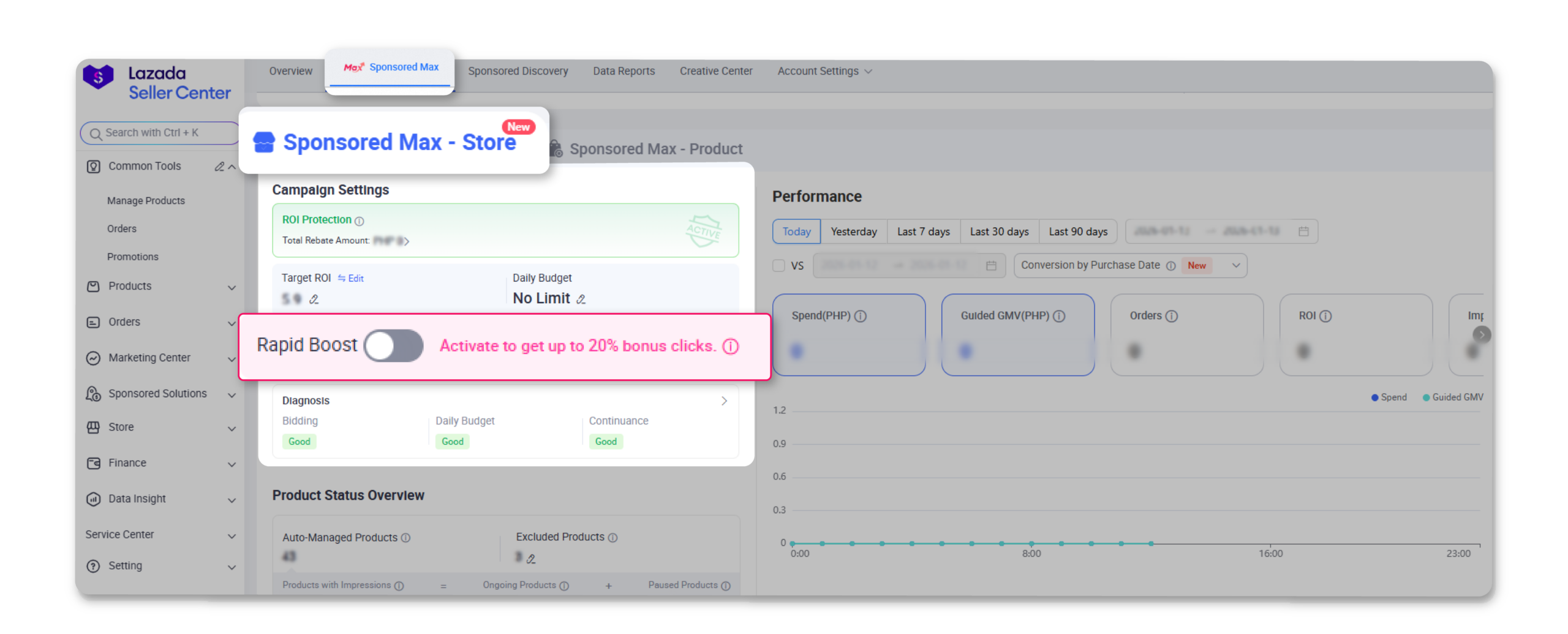 Rapid Boost is a growth acceleration feature for Sponsored Max – Store campaigns using target ROAS/ROI bidding.