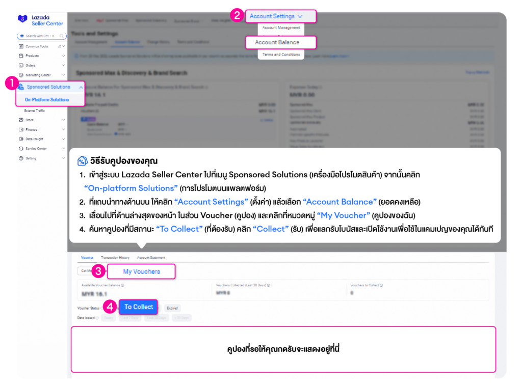 คุณสามารถรับคูปองได้ที่ส่วน “คูปองของฉัน” หลังจากที่คูปองเรามอบให้