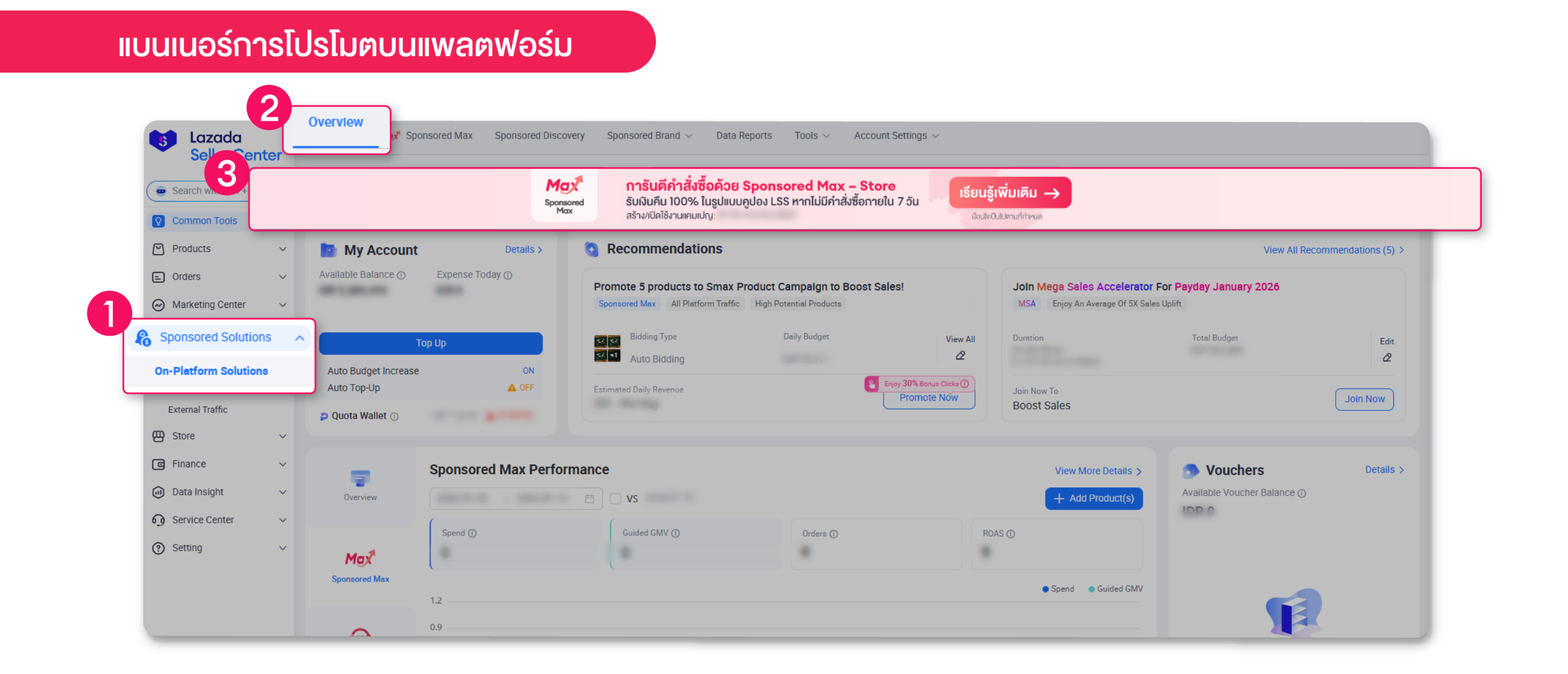 รับเงินคืน 100% ในรูปแบบLSS Voucher หาก Sponsored Max – Store ของคุณไม่ได้รับคำสั่งซื้อภายใน 7 วันติดต่อกัน โดยต้องเป็นไปตามเกณฑ์ที่กำหนด