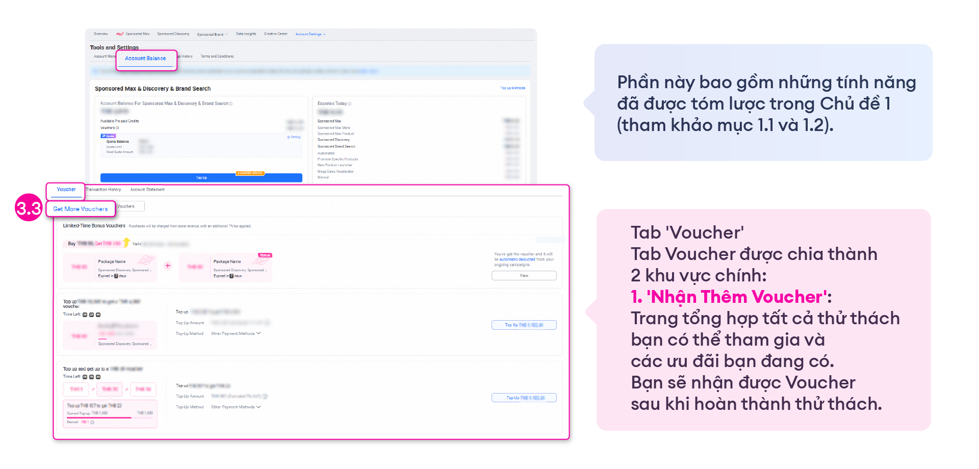 Tổng số dư của bạn cho tất cả các loại chiến dịch (Tài Trợ Max, Tài Trợ Hiển Thị Sản Phẩm và Tài Trợ Tìm Kiếm Thương Hiệu), bao gồm số dư nạp trước và voucher hiện có.
