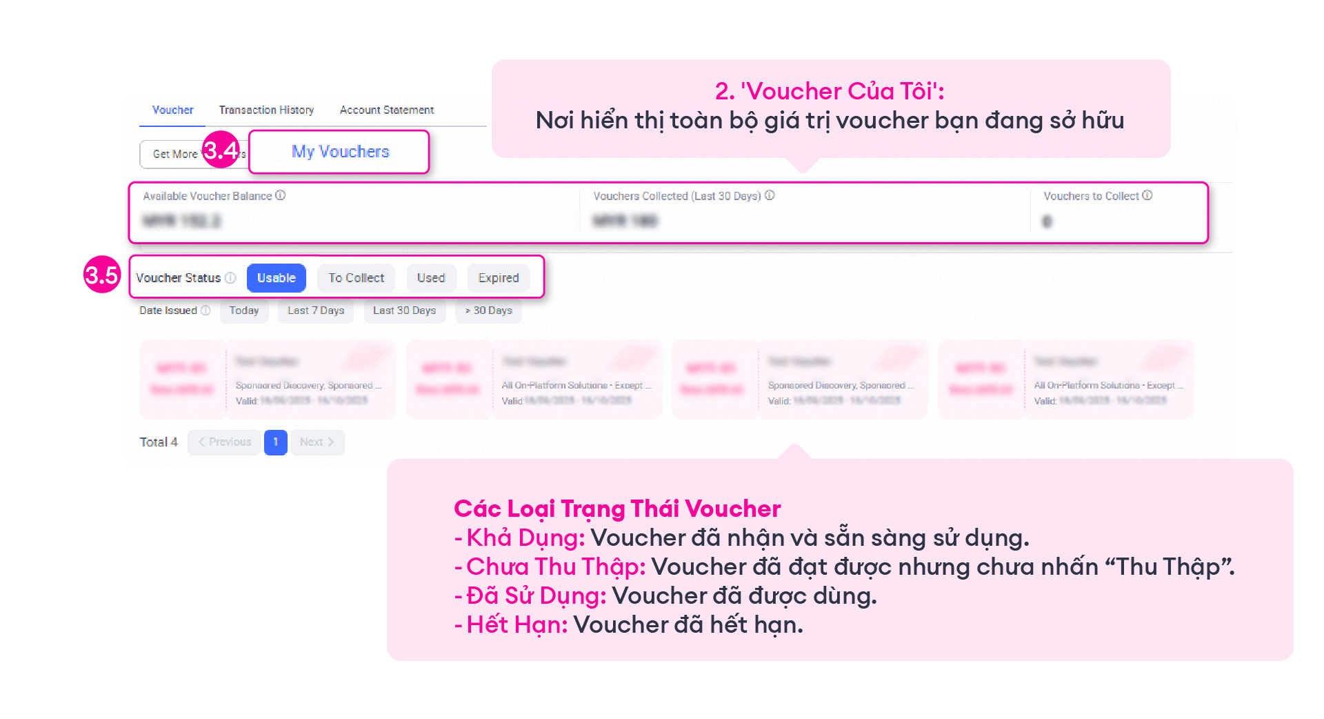 ✅ Nhận Voucher: Sau khi hoàn thành thử thách, bạn chỉ cần nhấn ‘Chi Tiết‘, hệ thống sẽ dẫn bạn tới trang ‘Số Dư Tài Khoản‘. Cuộn xuống dưới sẽ thấy mục Voucher dành riêng cho bạn.