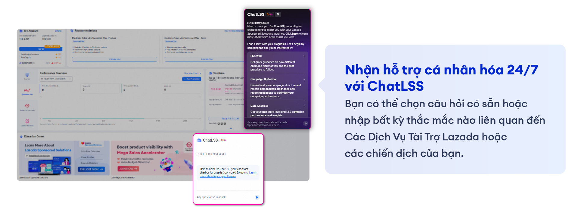 - Trải Nghiệm Cá Nhân Hóa: Nhận Đề xuất thông minh, tham gia Thử thách, nhận Voucher độc quyền và được hỗ trợ nhanh chóng từ ChatLSS AI Chatbot.