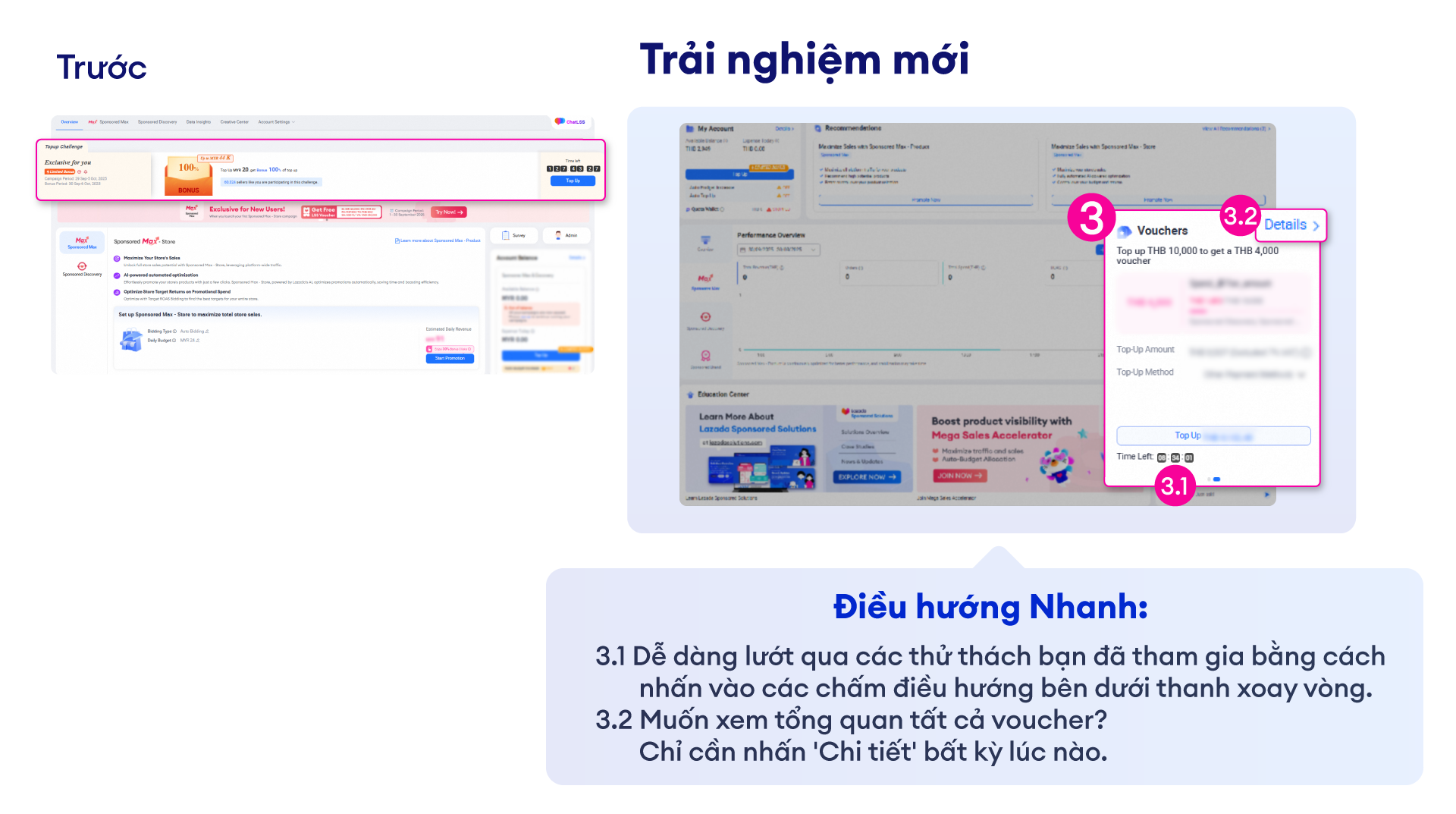 - Truy Cập Tất Cả Trong Một: Dễ dàng xem các mục Tài khoản, Đề xuất và Voucher trên một giao diện.